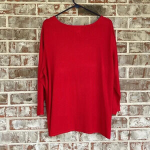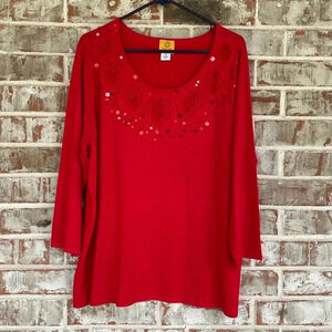 Ruby Road Red Rosette Sequin Scoop Neck Sweater