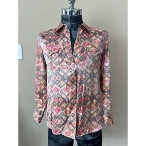Ruby Road Shiny Peach Aztec Print Button Down Shirt –Size 14P Southwestern Style