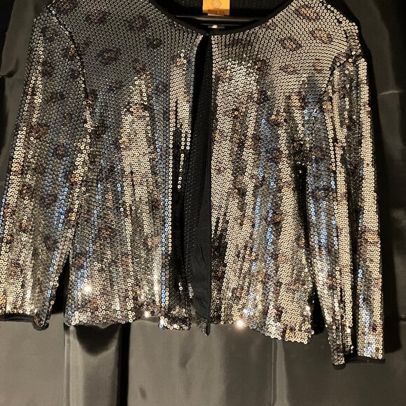 Ruby Road Size Small Great condition Open front silver sequin jacket , with animal print under sequins