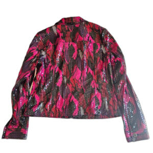 Ruby Road Sz 8 Preformance Jacket Vinyl Faux Sequins Full Zip Stretch Concert