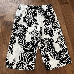 Ruby Road White Black Tropical Print Linen Cropped Pants Women's Size Large