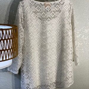 Sheer white lace blouse top with a built in white tank top underneath. Size medium. Excellent condition. Soft lace.