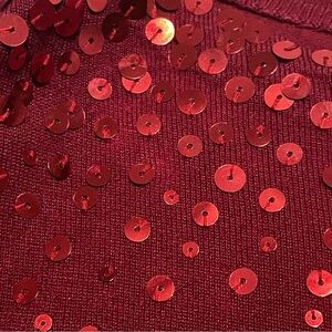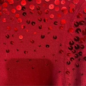 Ruby Road red sweater with sequin embellishments GUC size Petite Large