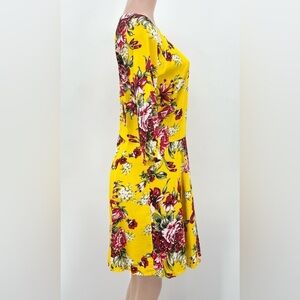 Ruby Rocks Yellow Floral Print 3/4 Sleeve Lightweight Dress, Women’s Size Large (PLEASE REFER TO MEASUREMENTS BELOW).