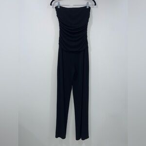 Vintage. In Great condition. Perfect versatile jumpsuit that can be dressed up or down. Chic black jumpsuit with ruched bodice. Perfect for stylish outings.