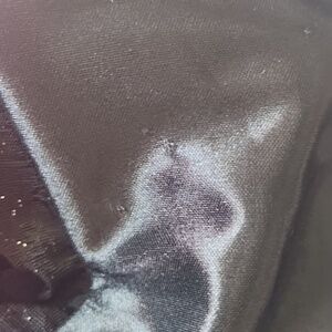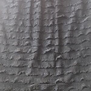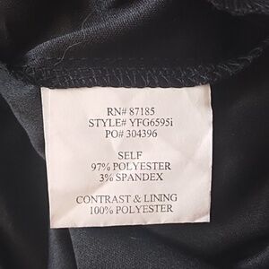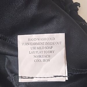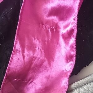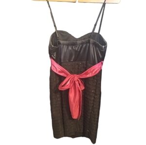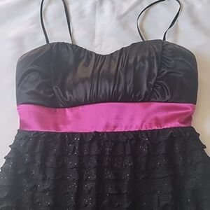 Elegant black dress with pink accents. Sleeveless with a chic ruffle skirt design.