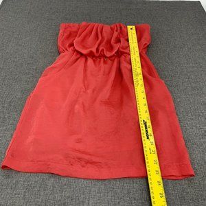 Ruby Rox Bright Coral Strapless Mini Dress Size 5 Pockets Pleated 100% polyester