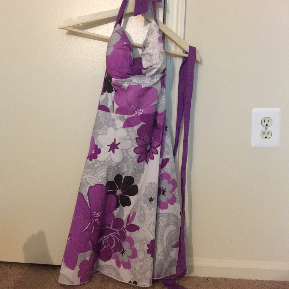 Floral ruby rox dress, worn once, size 3, with purple belt. Halter.