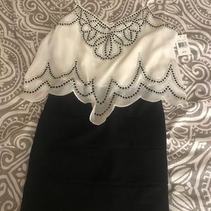 NWT! Very flattering mini dress. Bought It for an event and went with a different option. Dress size says one but fits like a 2/4