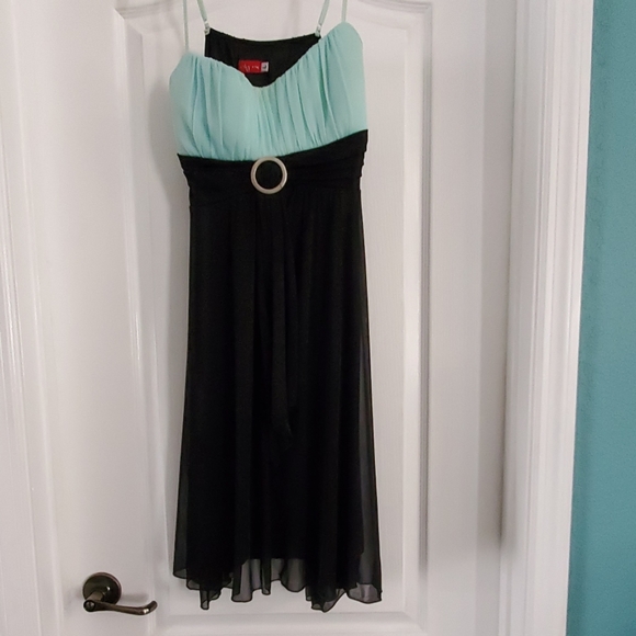 Worn 1x. Great condition. 100% polyester The blue color is between a baby blue and light mint color.