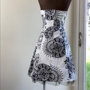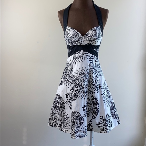 Super cute halter dress. Tie strap around neck. Inner lining with black tulle around bottom hem. Get ready for the summer!
