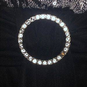 The dress is size XL. It is spaghetti strap. There is zebra print on the top with black at the bottom. The dress ties in the back. The circle in the middle is missing one diamond on the bottom right. The dress has also never been worn before.