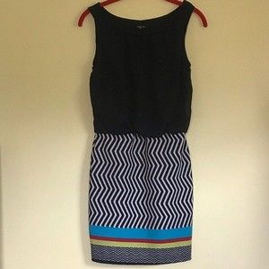 Ruby Rox Dress Solid Top and Striped Bottom looks adorable on so cute black top Blue/yellow /red bottom Size Small