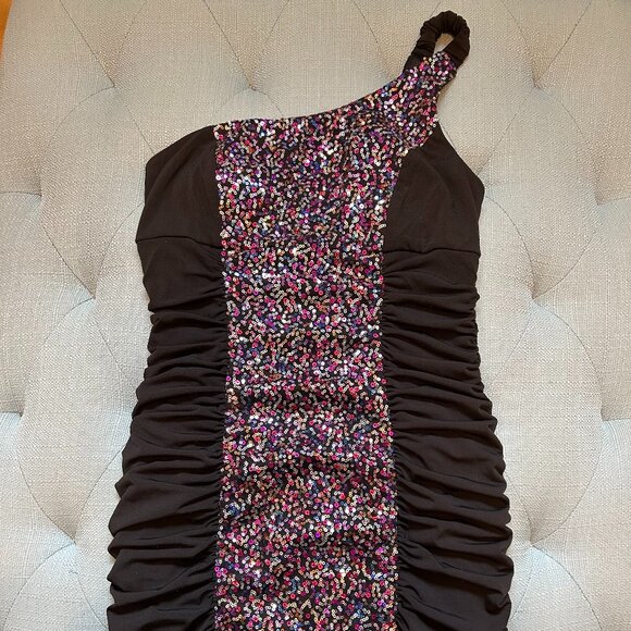 Ruby Rox Panel of Sequins One Shoulder Mini Dress