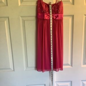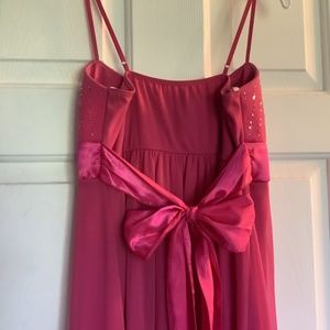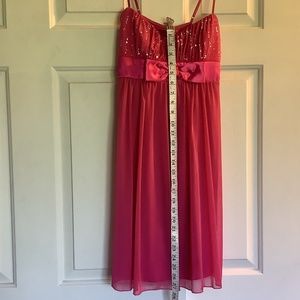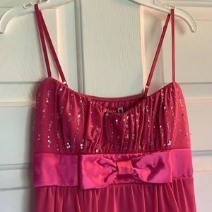 Cute sequined top dress. Very nice thick pink ribbon ties the dress back. In good condition.
