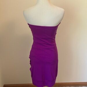 Turn heads in this stunning Ruby Rox mini dress, featuring a strapless sweetheart neckline adorned with shimmering sequins. The rich purple hue and asymmetrical ruching create a flattering bodycon silhouette, perfect for a night out or cocktail event.