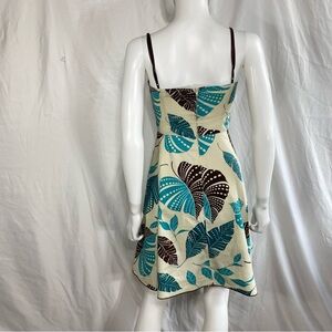 Ruby Rox Retro Y2K Strappy Fit & Flare Teal Brown Leaf Print Dress