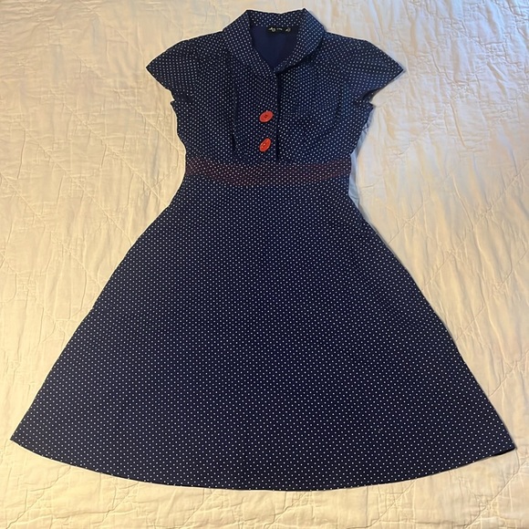Super cute polka dot dress. Knee length, cotton fabric, buttons have anchors on them. Size 3 is like a typical XS. Excellent condition. Message me for measurements ๐