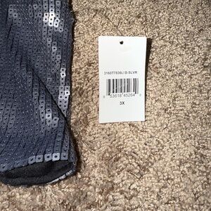 Chic black shrug with silver sequins. Adds elegance to any look.