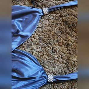 This is a medium Ruby Rox silver halter top dress with silver decorations on the straps