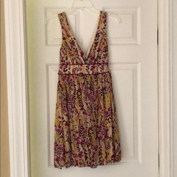 This dress is so much fun! The deep V back is very elegant. It’s colors are suited to spring, summer and even early fall. It falls above the knee. This item comes from a smoke free home. Thanks for looking!
