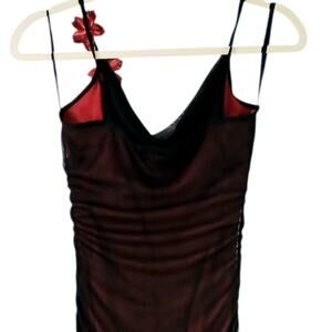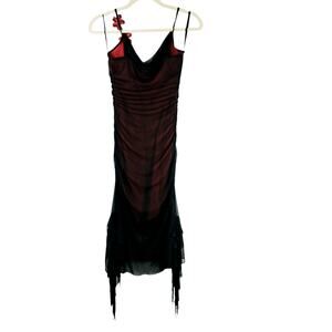 Ruby Rox VTG SZ S (4) Goth Black & Red Body Con Dress Floral Details At Strap