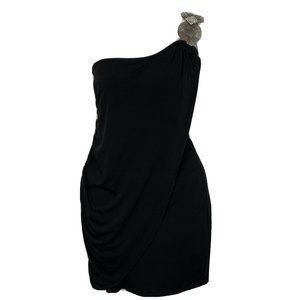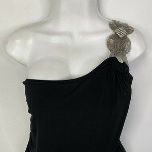Ruby Rox Women Dress Black Size Small One Shoulder Rhinestones Silver Lined