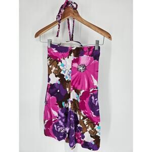 Ruby Rox Women's Multicolored Tie-Dye Floral Halter-Neck Blouse Size M