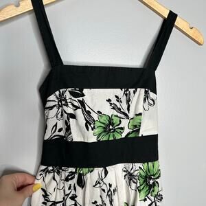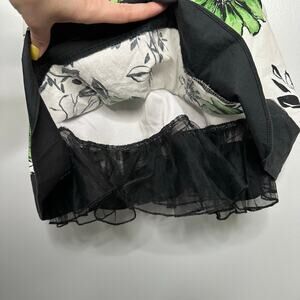 Ruby Rox Women's Y2K Black, White + Green Floral Print Tie Back Flare Dress 3