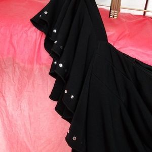 Size small mini dress. This dress goes over the left shoulder. Right string in pic is just the string to hang it up. It also has a slip underneath. EUC this is the perfect little black dress all girls want. Poly/spandex material makes it easy to wash and wear. Bundle this dress before it's gone.