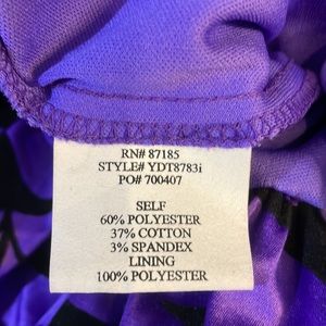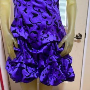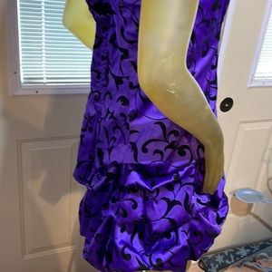 EUC gorgeous purple and black dress. Strapless. Worn once. Lined. Size 13, approximate measurements are armpit to armpit 17" flat but stretches too, waist 32", side seam armpit to hem 27. A22