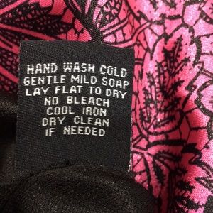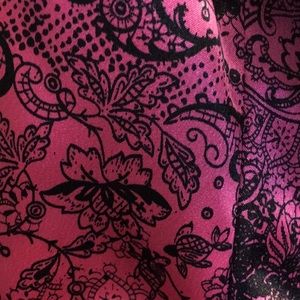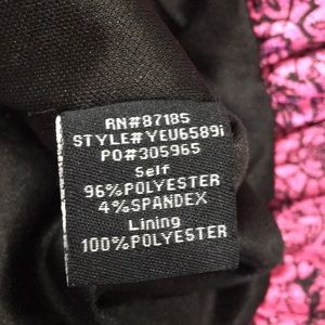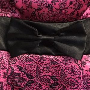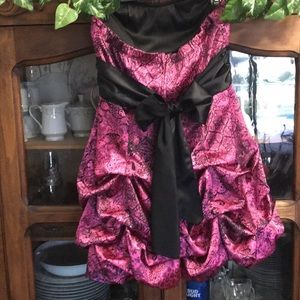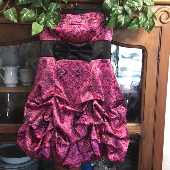 Pink and Black strapless. Lots of ruffle and fluff. Tie around waist. 15” across chest 26” armpit to hem.