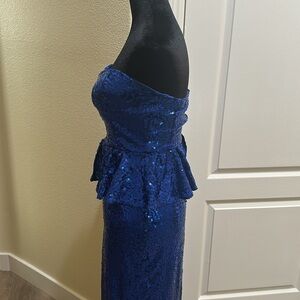 Ruby Rox long Royal Blue strapless Sequin Dress with peplum. Size 5