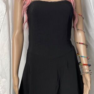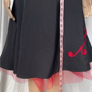 Black strapless cocktail dress black with red tulle underneath. Size 3. (232)