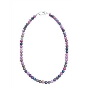A SELECTION OF SAPPHIRES AND RUBIES, INCLUDING STAR SAPPHIRES, HAVE BEEN HANDPICKED FOR THEIR STRIKING COLORS AND DISTINCT STAR EFFECT. THIS 16-INCH NECKLACE IS FINISHED WITH A STERLING CLASP.