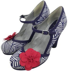 Ruby Shoo Mary Jane Heel Shoes Size EU 38 US 7 Red Flower Retro Geometric