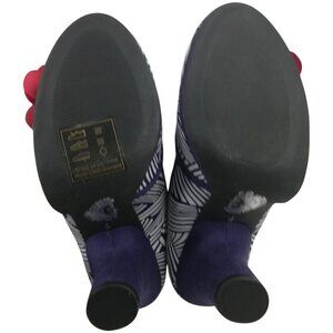 Ruby Shoo Mary Jane Heel Shoes Size EU 38 US 7 Red Flower Retro Geometric