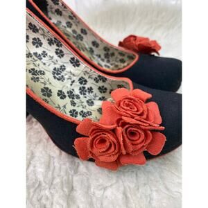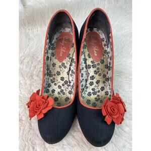 Ruby Shoo Women's Size EU 39 US 8.5 Black Fabric Red Floral Heels Pumps