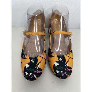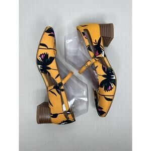 Ruby Shoo Yellow Floral Shoes Ankle Strap Low Heel Women’s Size 6