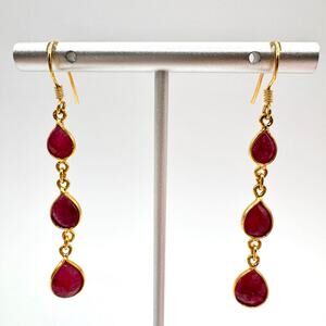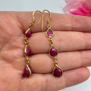 Ruby Teardrop Linear Dangle Earrings Gold Tone Tested Bollywood Boho Gemstone