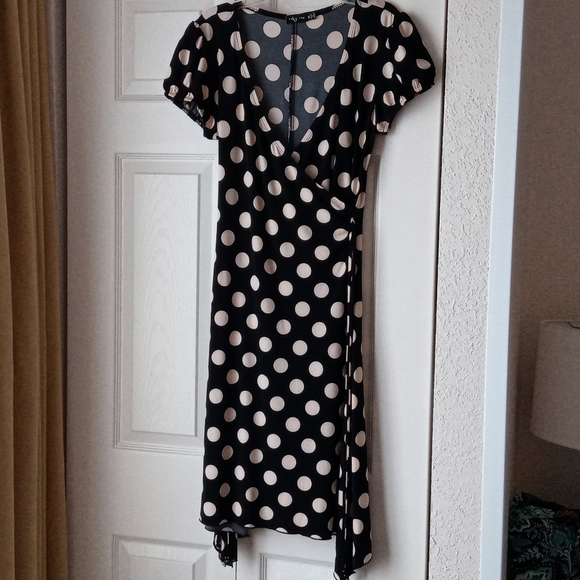 Adorable lightweight mock wrap dress from Ruby Rox. Size medium, with ties on both sides and a swing skirt. Excellent condition.