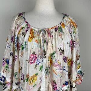 Ruby Ya Ya Off White Multi Floral Lace Peasant Top Medium