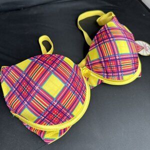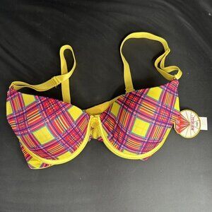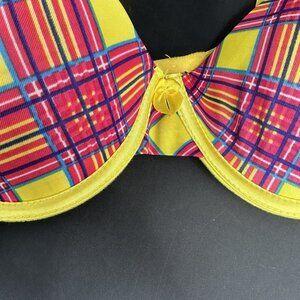 Ruby Yellow Pink Bra 34D Silky Feel Trim Removable Straps Adjustable Convertible
