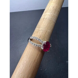 Ruby and zircon crisscross sterling silver ring size 9