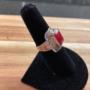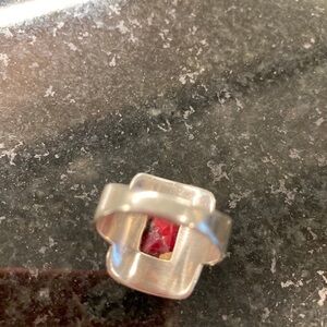 Ruby 4.73 carat emerald cut. Ruby is highly included. No markings, looks like silver.