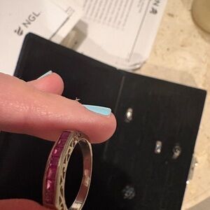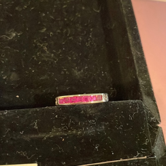 Beautiful hand made Ruby band set in sterling silver size 7 and hand engraving on side