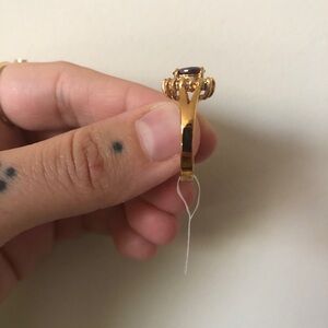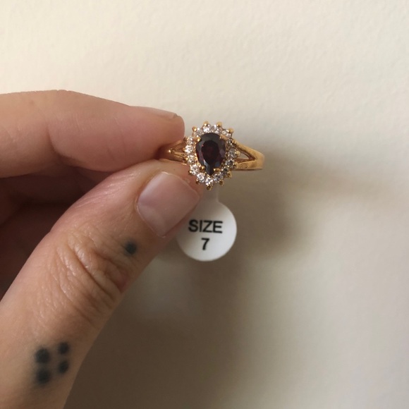 NWT ruby + Diamond ring (no not real diamonds and ruby😂) Really cute. Never wore it, it still has the tag on it. There’s a stamp inside but I can’t read what it says (see photo) tagged size 7. Perfect for evenings out or for a costume! Really intense beautiful color.