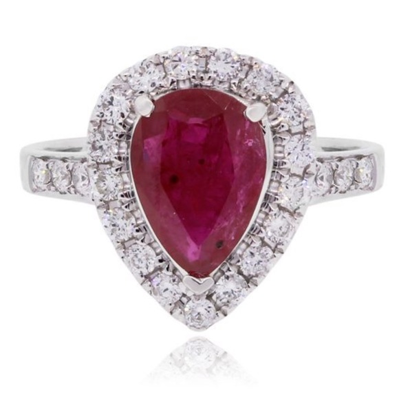 Beautiful pear shape ruby and diamond engagement ring.