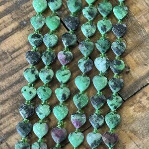 Ruby in Zoisite Faceted Heart Bead Strand - 8mm