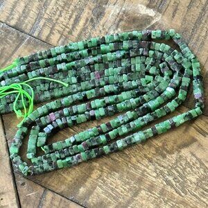 Size: about 4mm long, 4mm wide, 2.5~3mm thick, hole: 1mm, about 156~164pcs/strand, 15.08''(38.3cm)~15.35''